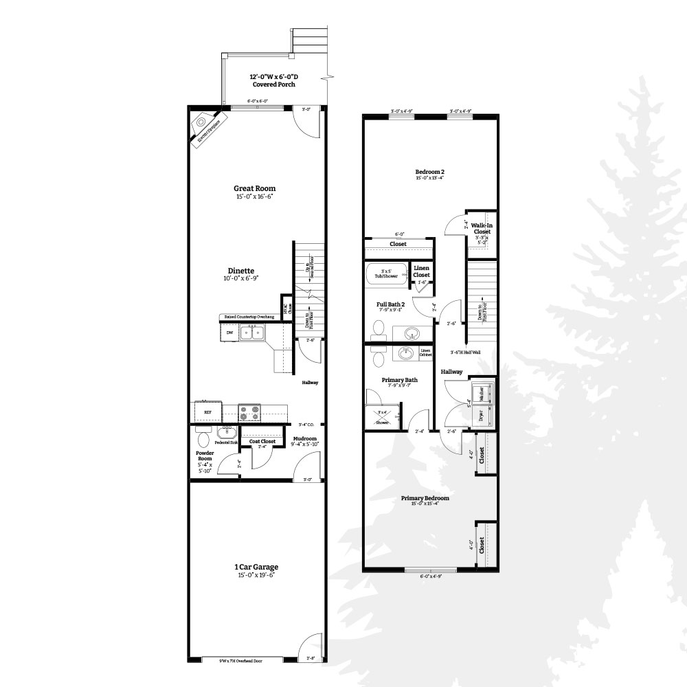 The Saranac embodies elevated living with a spacious, light-filled design enhanced by the exclusivity of an end-unit location. This two-bedroom, two-and-a-half-bath townhome features a desirable first-floor primary suite for effortless day-to-day living, while the generous second bedroom, complete with its own ensuite bath and two walk-in closets, offers comfort and privacy for guests or family.