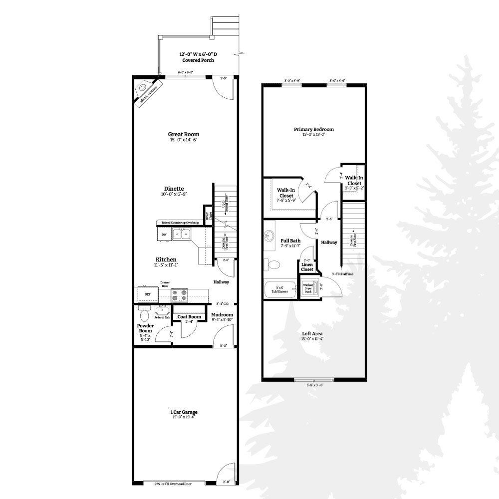 The Cypress presents a well-appointed and inviting home design that blends architectural interest with everyday ease. This one-bedroom, one-and-a-half-bath residence features a generous open kitchen that anchors the main living space, while the upstairs loft offers a flexible area ideal for a home office, lounge, or guest retreat. The primary bedroom is thoughtfully designed with two walk-in closets, providing ample storage without sacrificing style.